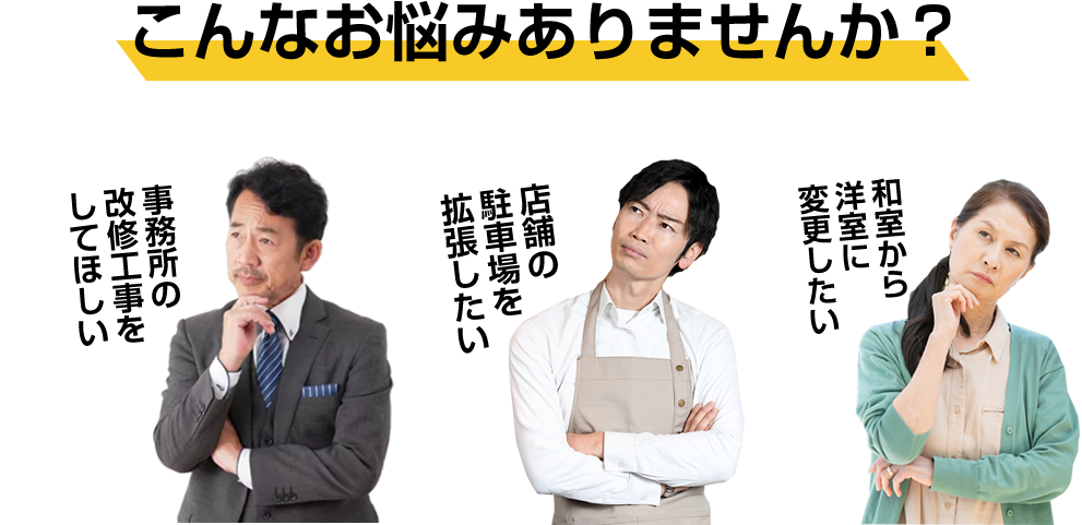 | 事業内容 | リフォーム・塗装工事・防水工事 外構工事・舗装工事・ユニットハウス販売仲介 公共工事 |